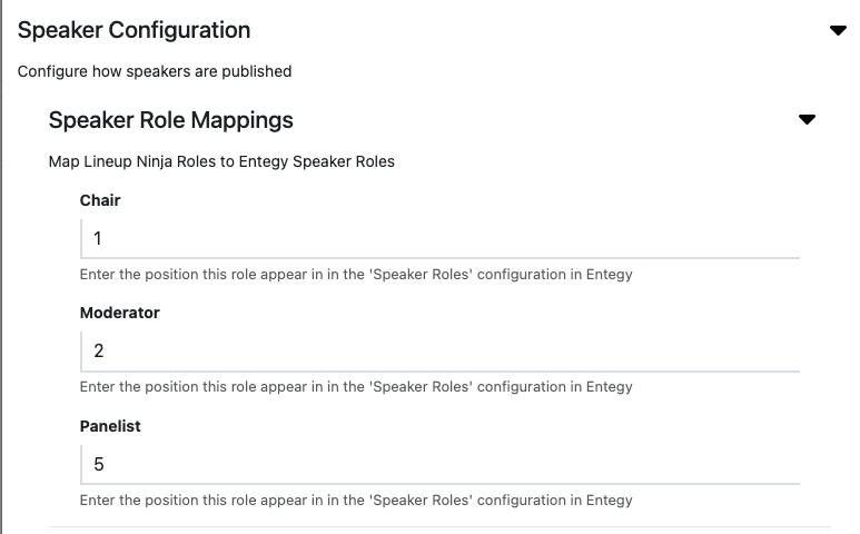 Roles. Merging role A into role B will show speakers with role A has having role B. This can be useful if you have a lot of roles internally that are not intended to be shown in the report. You can merge them into a role with a name appropriate for the report.